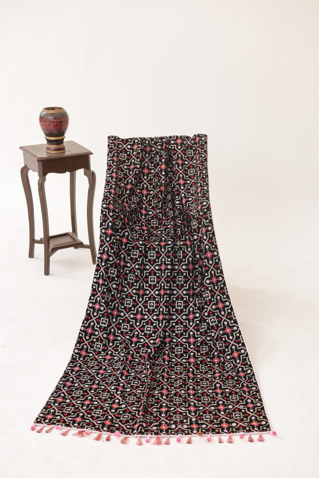Black velvet embroidered shawl. Size: 2.5 yards with poly satin lining.